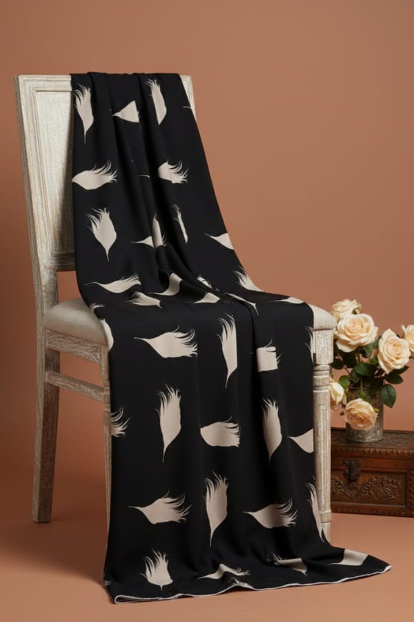 Designed for looking elegant, draped nicely, and feeling soft and light. Barbie crepe abaya fabric is known for its gentle flow and matte finish. It makes an elegant shape that looks good with both modern and classic abaya styles. Crafted from high-quality polyester barbie crepe, This printed abaya fabric is light but strong, and it breathes well and feels great on the skin. It’s perfect for everyday wear, formal events, and custom designing. It is easy to sew and style, and it looks great with embroidery, pleats, and elaborate motifs.