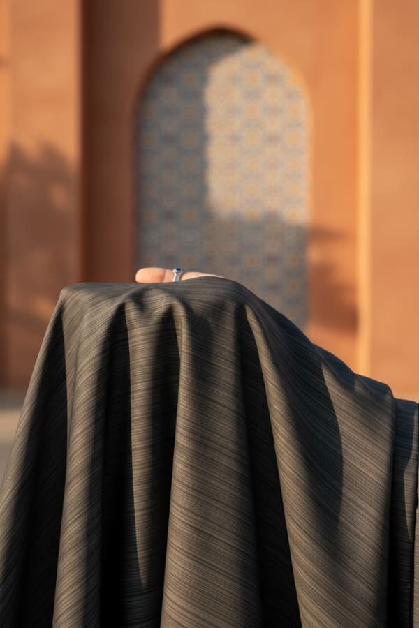 Designed for looking elegant, draped nicely, and feeling soft and light. Barbie crepe abaya fabric is known for its gentle flow and matte finish. It makes an elegant shape that looks good with both modern and classic abaya styles. Crafted from high-quality polyester barbie crepe, This abaya fabric is light but strong, and it breathes well and feels great on the skin. It’s perfect for everyday wear, formal events, and custom designing. It is easy to sew and style, and it looks great with embroidery, pleats, and elaborate motifs.