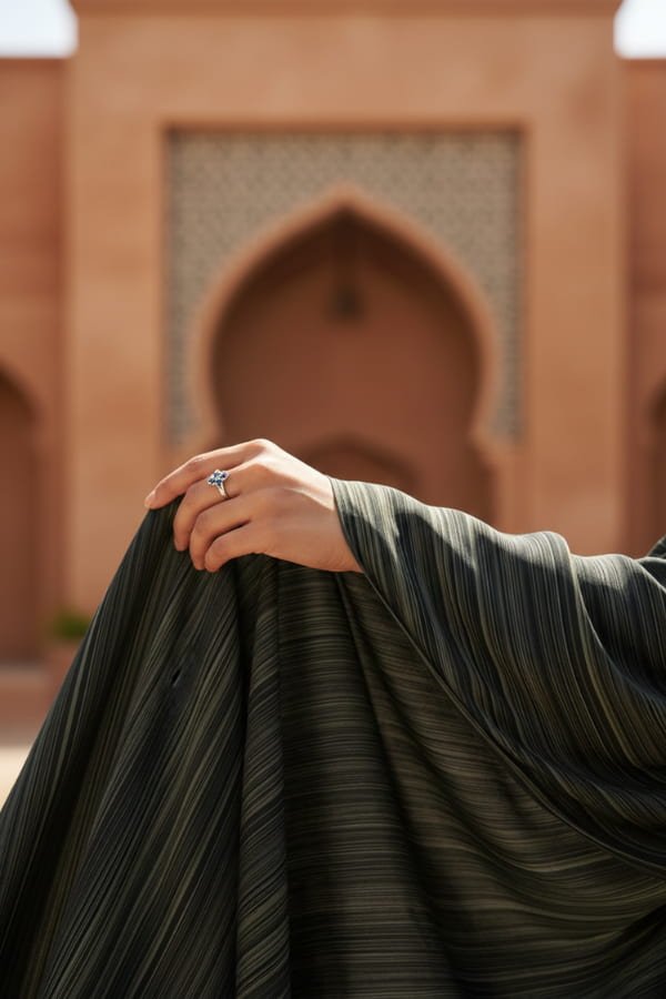 Designed for looking elegant, draped nicely, and feeling soft and light. Barbie crepe abaya fabric is known for its gentle flow and matte finish. It makes an elegant shape that looks good with both modern and classic abaya styles. Crafted from high-quality polyester barbie crepe, This abaya fabric is light but strong, and it breathes well and feels great on the skin. It’s perfect for everyday wear, formal events, and custom designing. It is easy to sew and style, and it looks great with embroidery, pleats, and elaborate motifs.
